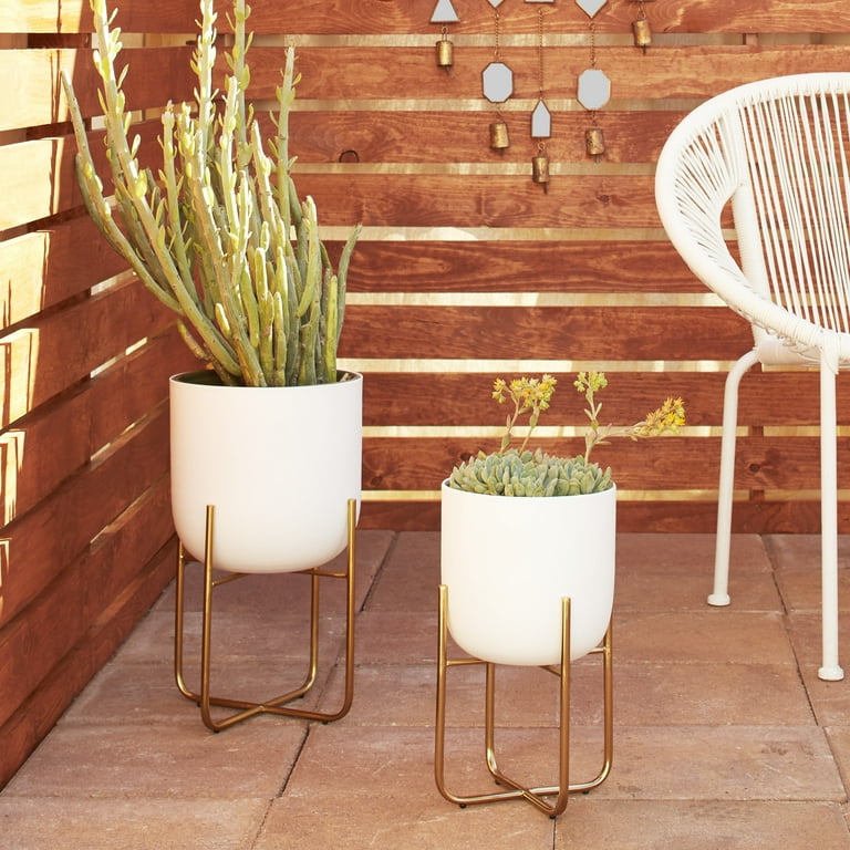 Decmode 16 13 H Indoor Outdoor White Metal Planter With Removable Gold Stand 2 Count Walmart Com