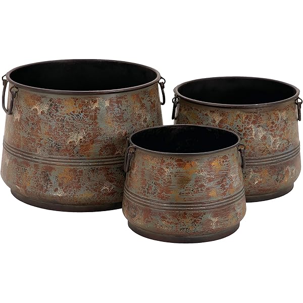 Amazon Com Deco 79 Rustic Metal Round Planter Set Of 3 13 11 9 W Copper Home Kitchen